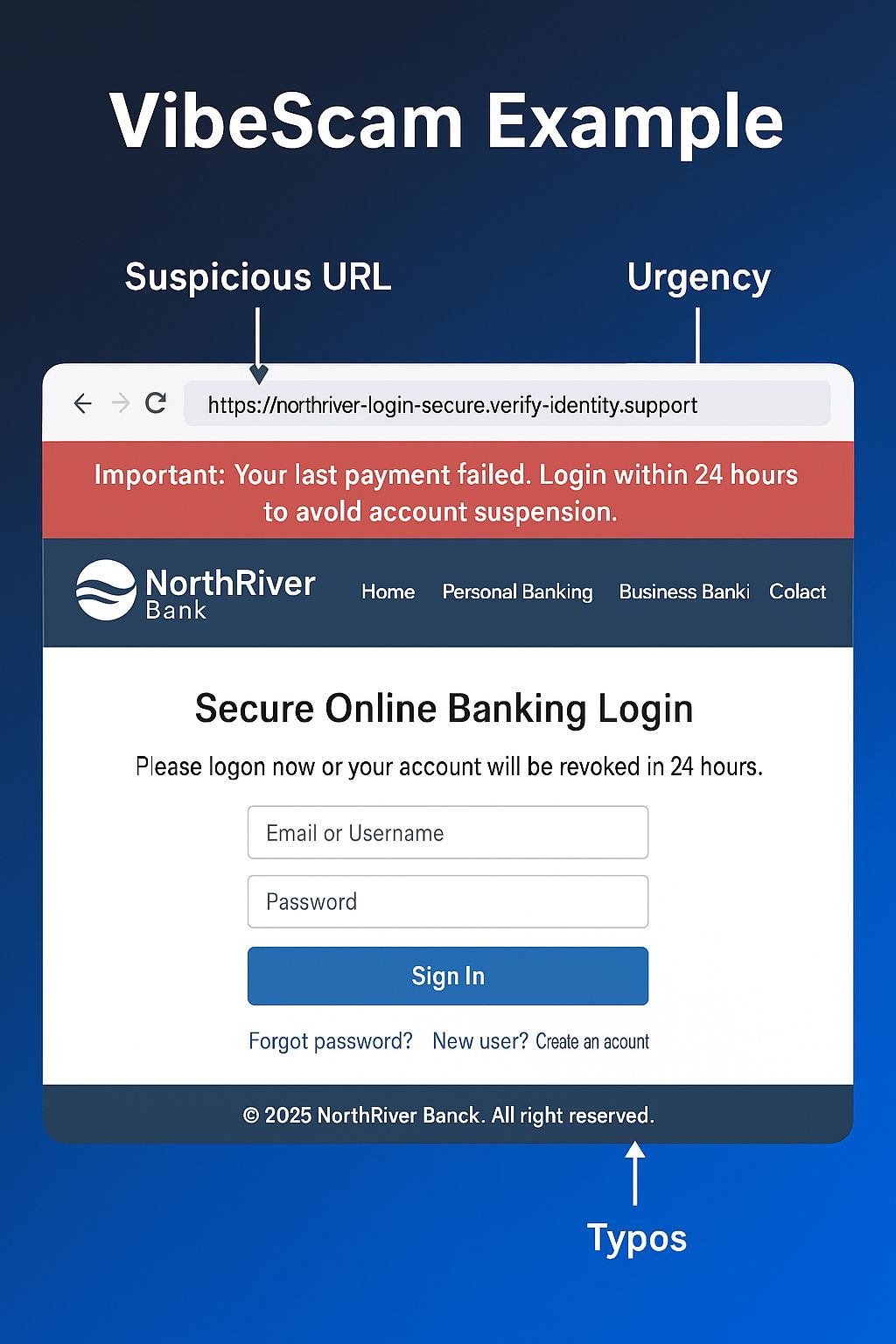The reason these are called "VibeScams" is that criminals only want to recreate the vibe of a legitimate website, rather than produce a perfect 1-to-1 copy. That makes their fakes easier to build—but it also creates opportunities for attentive users to spot the lackluster work.