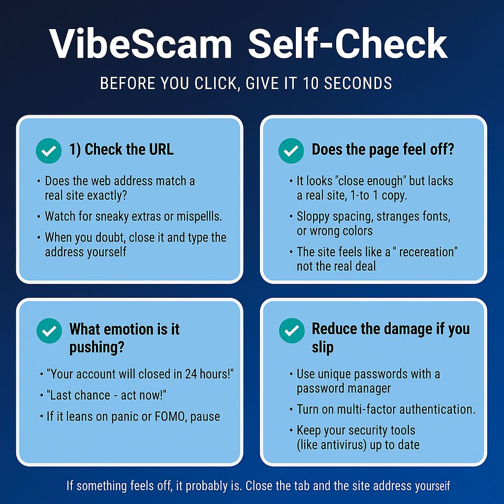 If this helped you feel a little more confident spotting VibeScams, don’t keep it to yourself. Most of the people we love—parents, neighbors, coworkers, that one friend who clicks every link—are seeing the same kinds of fake pages and have no idea how subtle they’ve become.